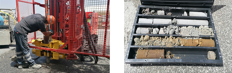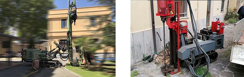 - Sondaggi a carotaggio continuo, in terreni sciolti e roccia, con esecuzione di prove in foro e prelievi di campioni disturbati e/o indisturbati con assistenza.